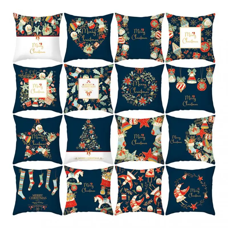 Синяя Рождественская наволочка в скандинавском стиле с персиковым принтом, рождественские украшения для дома, рождественские товары, Офисная подушка, наволочка