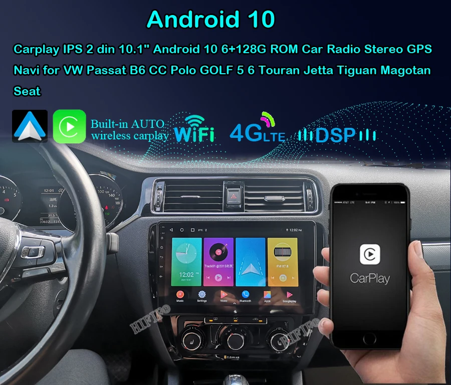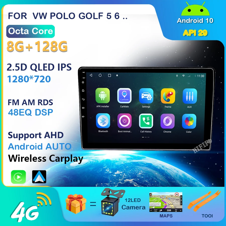 Автомобильная Мультимедийная Система DSP, автомагнитола 10,1 дюйма на Android 10, для Volkswagen PoloTiguanGolf 6 7Passatb7b6JettaSkodaOctavia, CarPlay