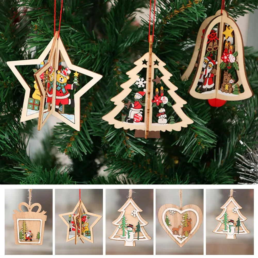 1 шт. 2D 3D Рождественское украшение деревянные подвесные кулоны зв...