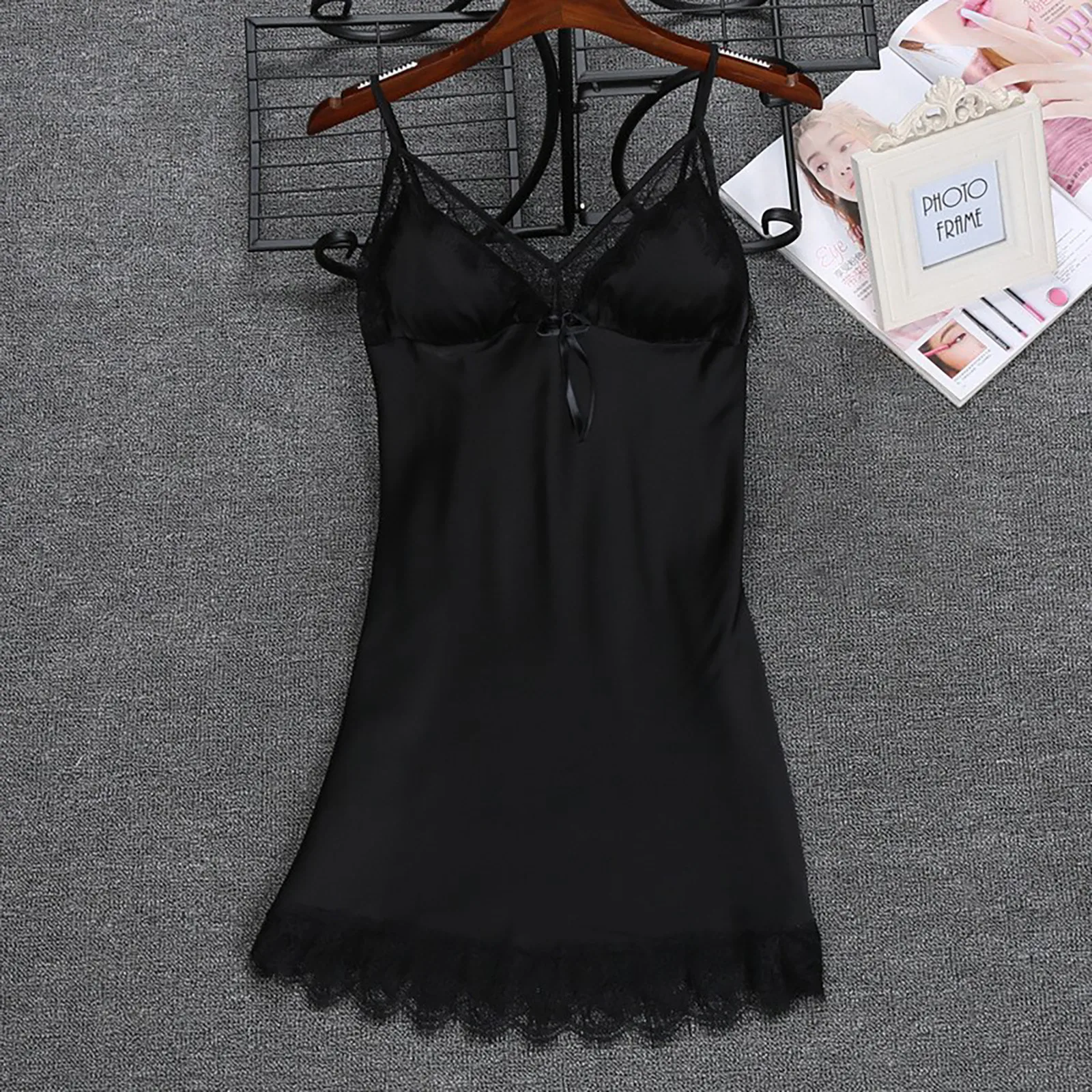Женский Пижамный костюм из 2 предметов, сексуальный халат-кимоно, ночная рубашка, кружевная атласная одежда для сна, женская черная Пижама, домашний костюм