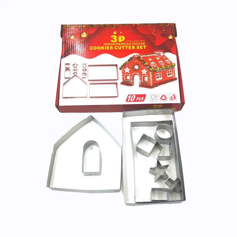 10 шт. форма для печенья из нержавеющей стали, 3D трехмерный имбирный домик, инструменты для выпечки, товары для рождественской вечеринки