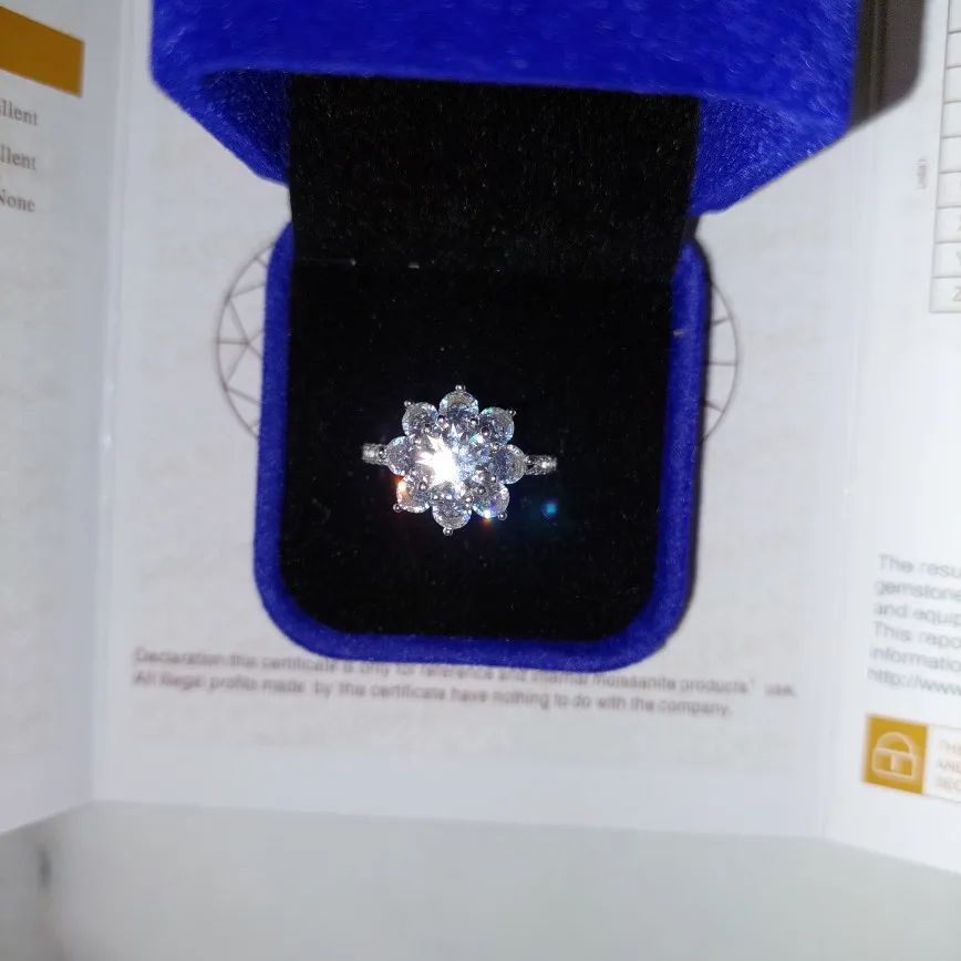 Муассанит класса люкс с рисунком "Подсолнух" кольцо 2,0 карат алмазов лотоса кольцо женские необычные свадебные кольца стерлингового серебра ювелирные изделия включает в себя коробку