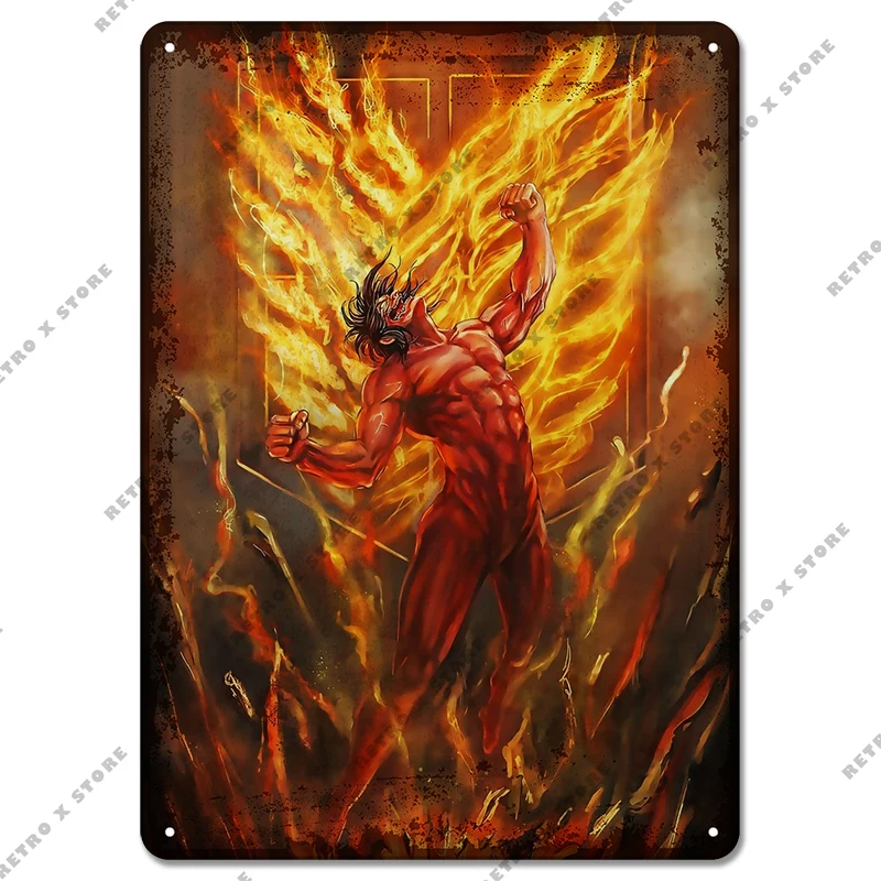 Жестяной винтажный аниме плакат атака на Титанов, Цветной Настенный Ретро Декор для дома, бара, кафе, гостиной
