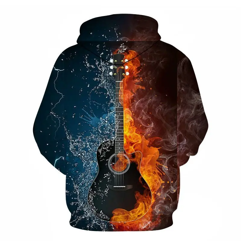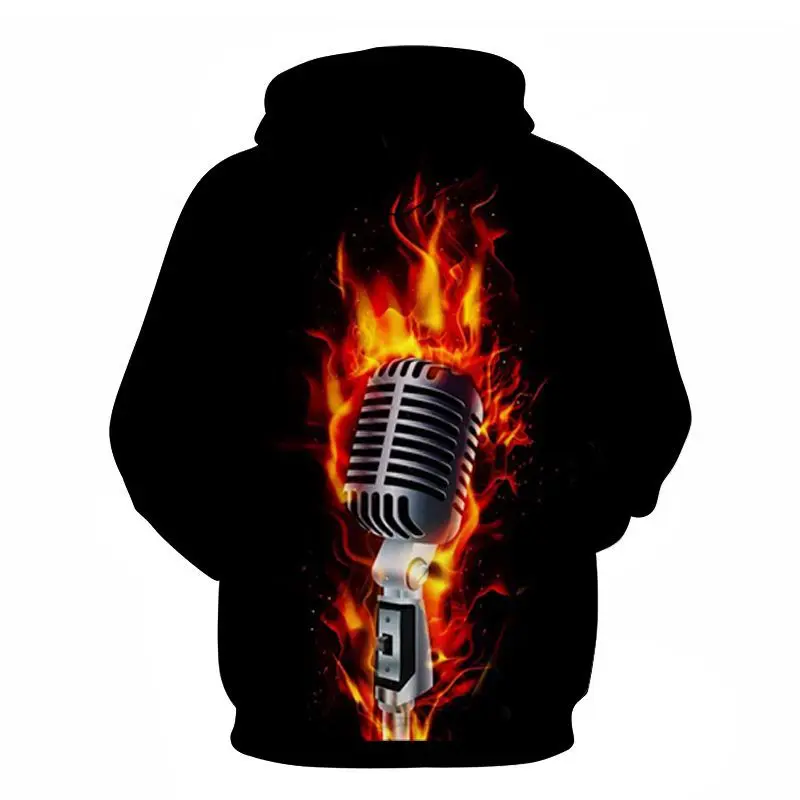 Рок музыка саксофон гитара толстовка с пламенем 3D Толстовка Мужска...