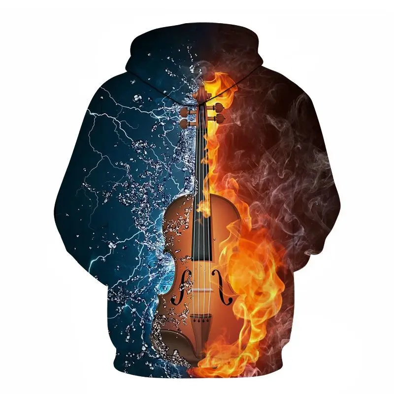 Толстовка Мужскаяженская с капюшоном, свитшот с 3D принтом, музыка, саксофон, гитара, пламенем, музыкальная нотация, уличная одежда