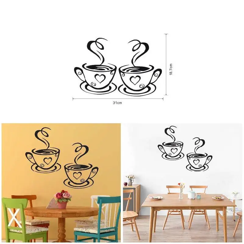 Новая двойная наклейка кофейные чашки, настенные из ПВХ виниловые х...