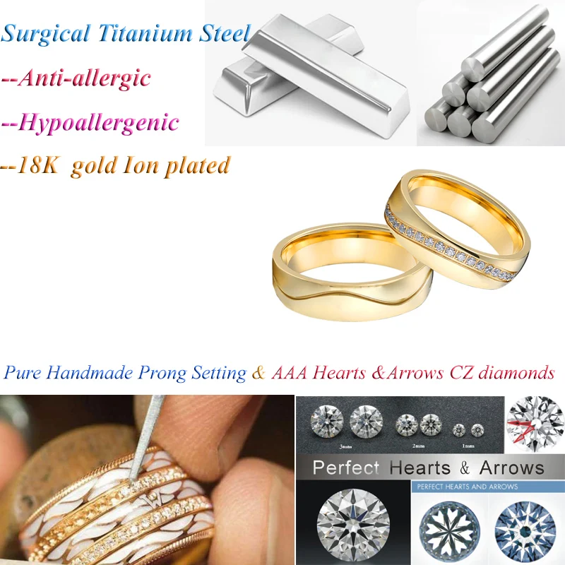 Напоминание:Цена за 2 кольца: сначала выберите мужской размер кольца, затем вы можете выбрать размер кольца для женщин.Доступные размеры:Женские кольца Размер США: 5 6 7 8 9 10Мужские кольца Размер США: 7 8 9 10 11 12 131. Материал: титановая нержавеющая сталь 316L2, 5A сердечки и стрелы кубический цирконий Алмаз3. Оригинальный цвет титановой стали-серебристый, который никогда не выцветает. Если цвет золотистый, он является настоящим 18К золотого ионного покрытием.Эти красивые свадебные кольца изготовлены из хирургической стали, которые очень прочные и никогда не окисляются и являются гипоаллергенными.