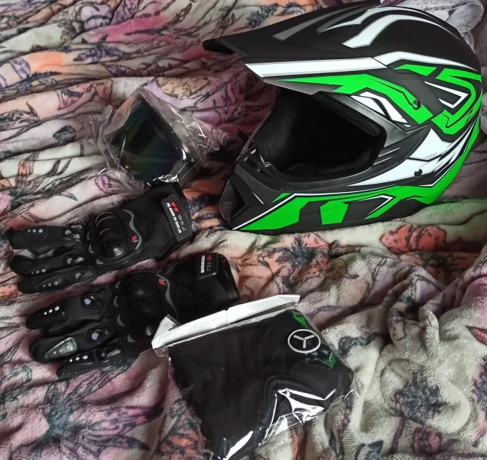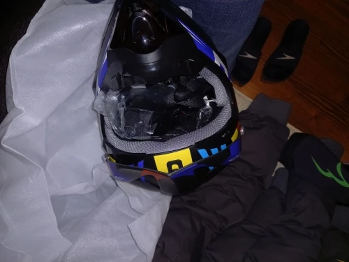 Шлем приехал с трещинной, очки без поролона и на резинке нет противоскользящих полосок.