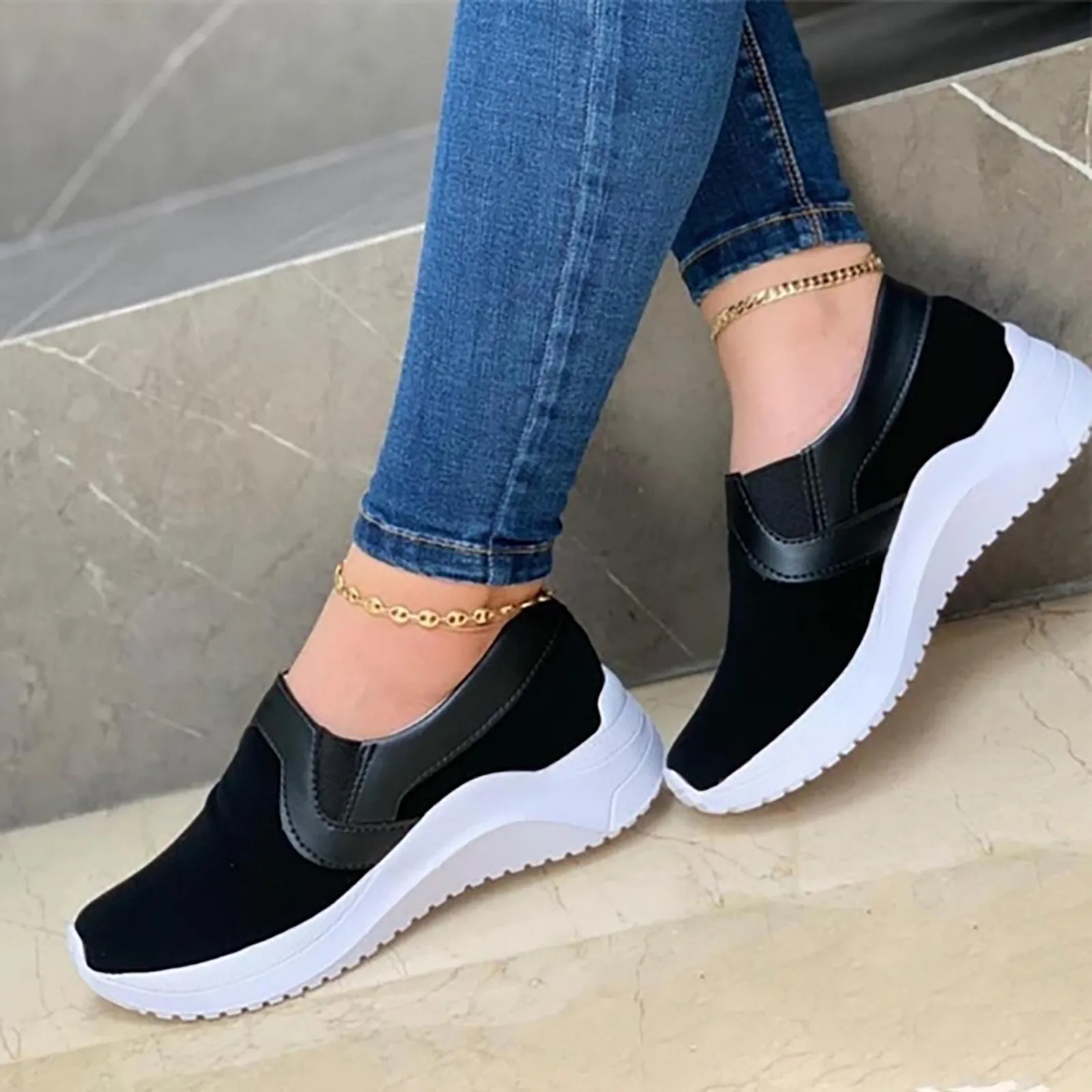 Женские кроссовки без шнуровки, повседневные сникерсы на плоской подошве, однотонные, для бега