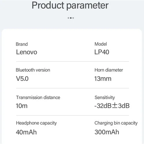 Lenovo LP40 Tws Headset True Wireless Bluetooth Earbuds (из-за рубежа) Характеристики: технология Bluetooth 5,0, стабильное и быстрое подключение, более высокая скорость передачи данных, низкое энергопотребление и низкая задержка. 13 мм Размер подвижной катушки блок принимает диафрагмы grafenden сделаны и очень чистый, высокий и стабильный звук. Двойной diyaframla оборудован, бинауральный HD поиск, даже в шумных условиях обеспечивает чистый звук. Сначала После сопряжения, зарядное устройство kulaklыklari достаточно, чтобы удалить наушники автоматически на ваш мобильный телефон. Полуушной дизайн, слуховой канал сидит комфортно и стабильно управляется. Маленький и светильник, легко носить с собой и использовать. Спецификация: бренд: Lenovo Модель: LP40 Цвет: черный/белый (опционально) Версия Bluetooth: v5.0 Расстояние передачи: 10 м диаметр рога: 13 мм чувствительность: -32 ± 3 дБ батарея Емкость: 300 мА · ч (зарядное устройство), 40 мА · ч (гарнитура) посылка: 1 х двойной наушник 1 * зарядное устройство 1 * зарядный кабель 2 * пара наушников 1 * Использование Руководство по эксплуатации