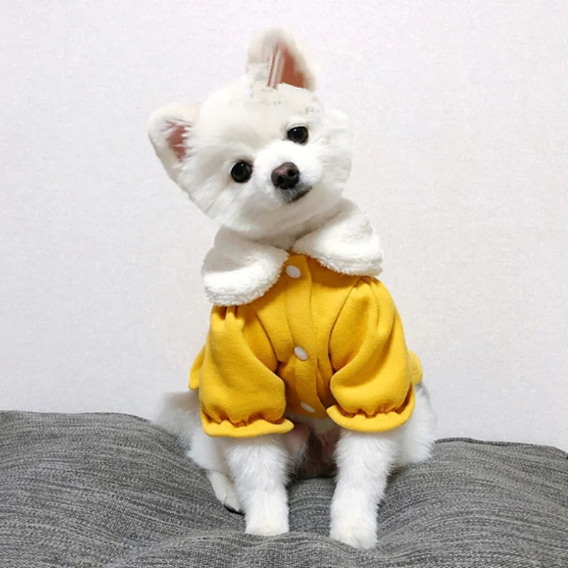 Милая желтая Розовая Одежда для собак, Вельветовая теплая одежда дл...
