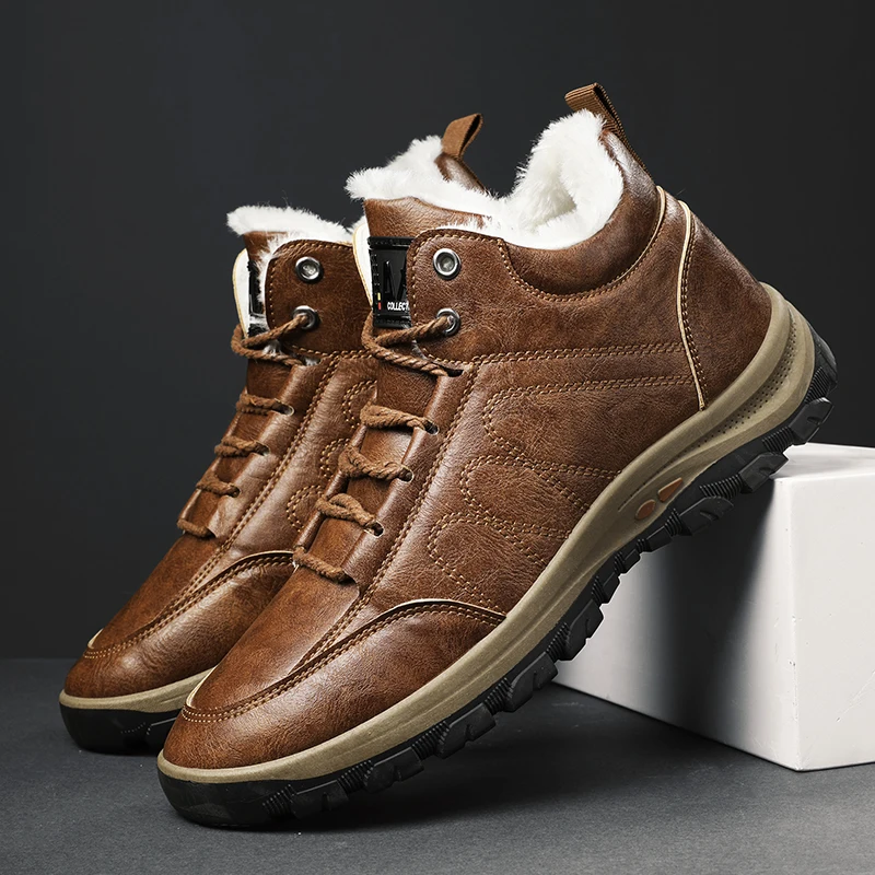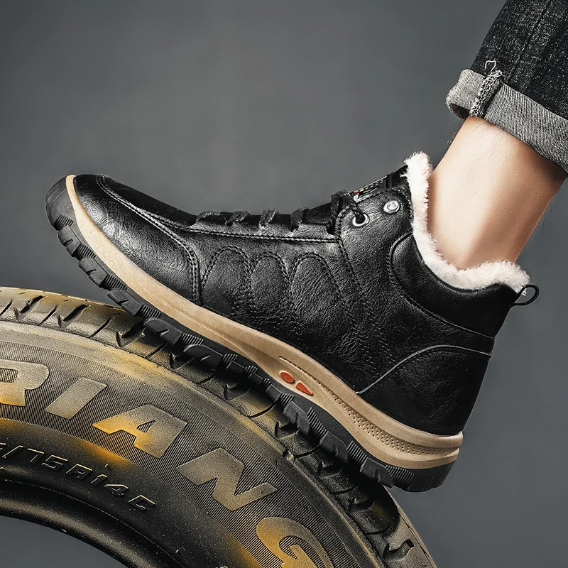 Мужские кожаные ботинки, модные кроссовки, зимние теплые мужские бо...
