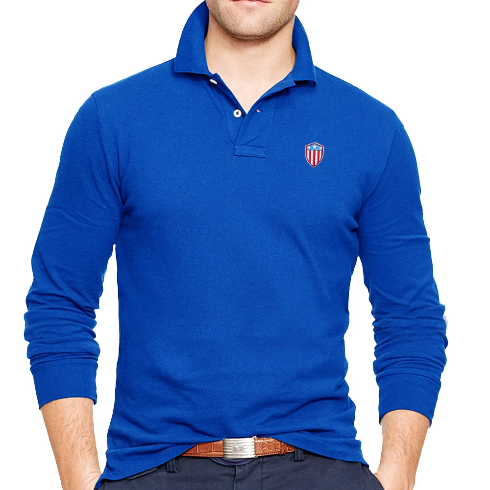 Рубашка-поло мужская с длинным рукавом, 100% хлопок, весна-осень