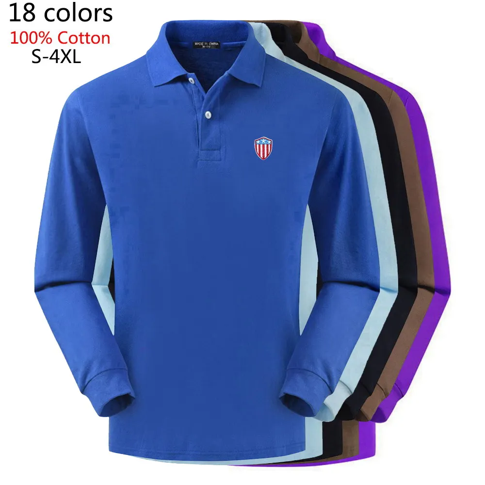 Мужская хлопковая рубашка-поло, Повседневная футболка-поло с длинным рукавом, Весна-Осень 100%