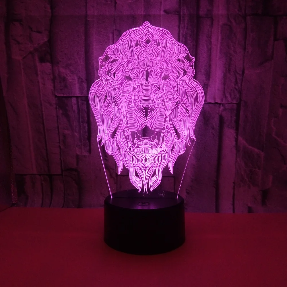 Иллюзионная Светодиодная лампа в виде льва, цветной сенсорный ночсветильник с 3D зрением, 7 цветов, сменные украшения светодиодный Светодиодная настольная лампа, подарок на день рождения и Рождество
