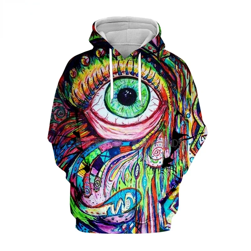 Толстовка мужская с капюшоном, худи в стиле хиппи, мандала, Триппи, абстрактный Психоделический глаз, длинный рукав, уличная одежда, зима-осень