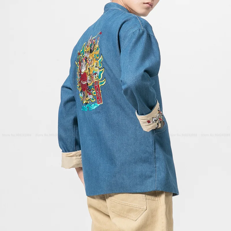 Рубашки с вышивкой в китайском стиле, повседневные джинсовые куртки в японском стиле Харадзюку, пальто, шаровары в стиле хип-хоп, брюки, комбинезоны, брюки