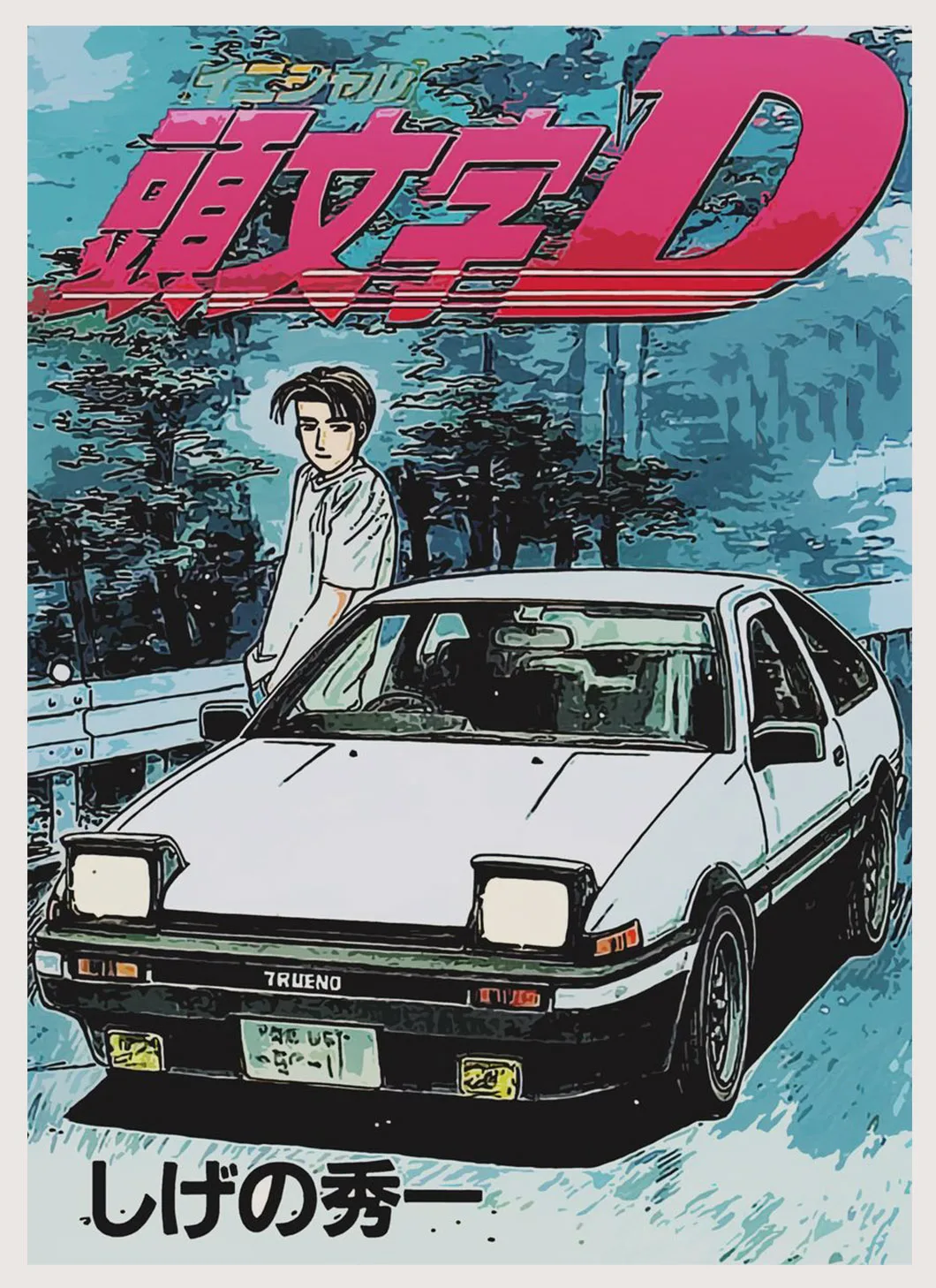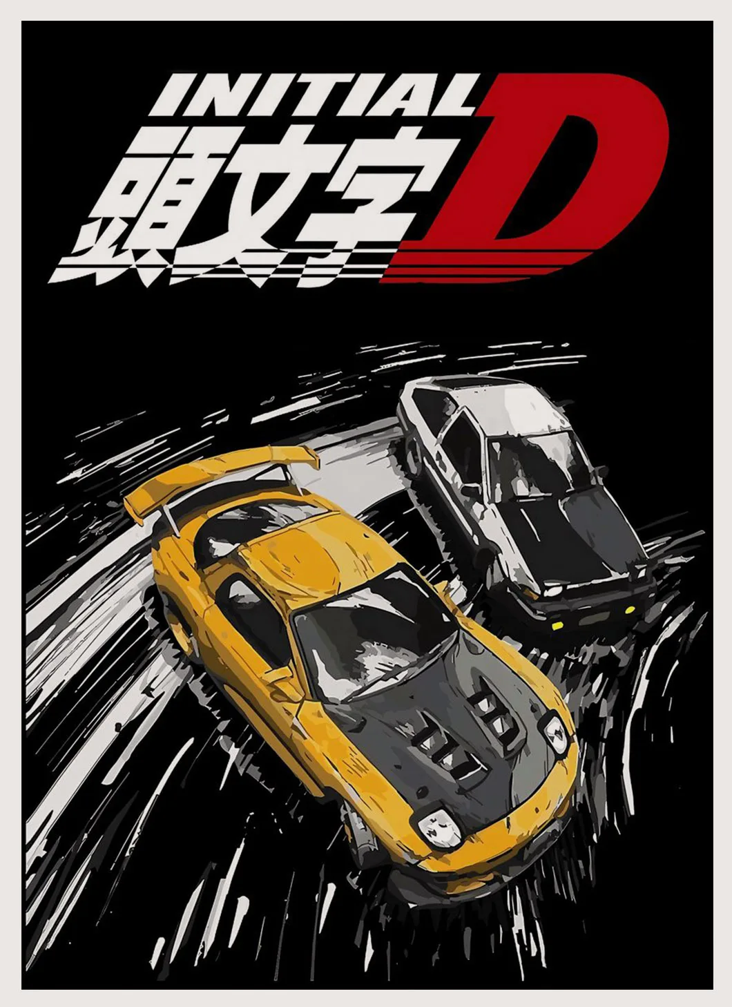 Японское аниме инициал D Искусство ретро постер пользовательское украшение комната бар Настенная Наклейка с изображением