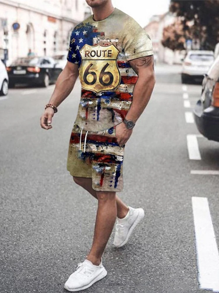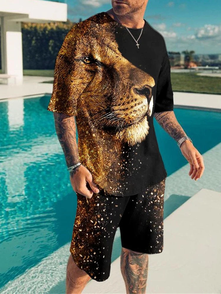 Мужская летняя спортивная одежда, повседневная футболка с коротким рукавом и шорты, Комплект футболок, спортивный костюм с 3d принтом, модный большой спортивный костюм для мужчин