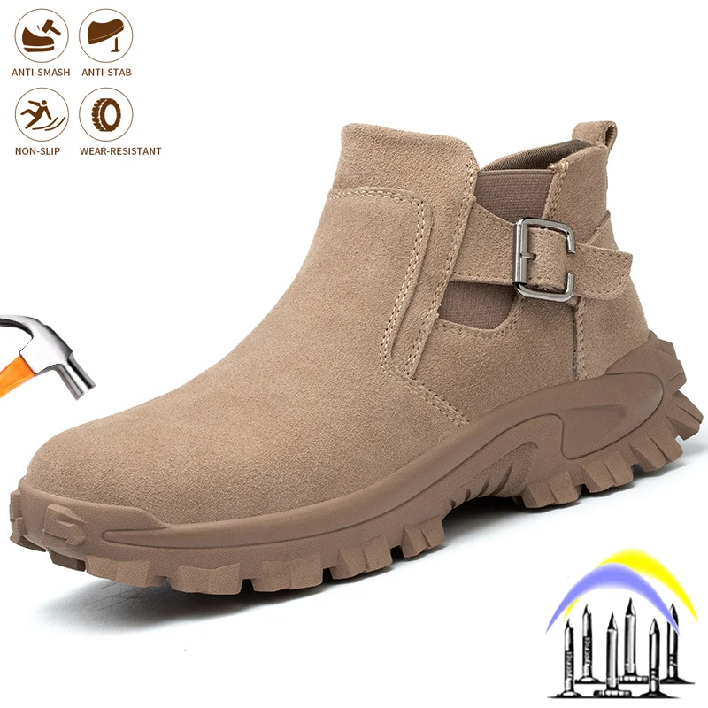 Рабочие защитные ботинки для мужчин, рабочие ботинки с неразрушаемым стальным носком, защита от прокалывания, безопасные кроссовки, комфорт, искусственная обувь