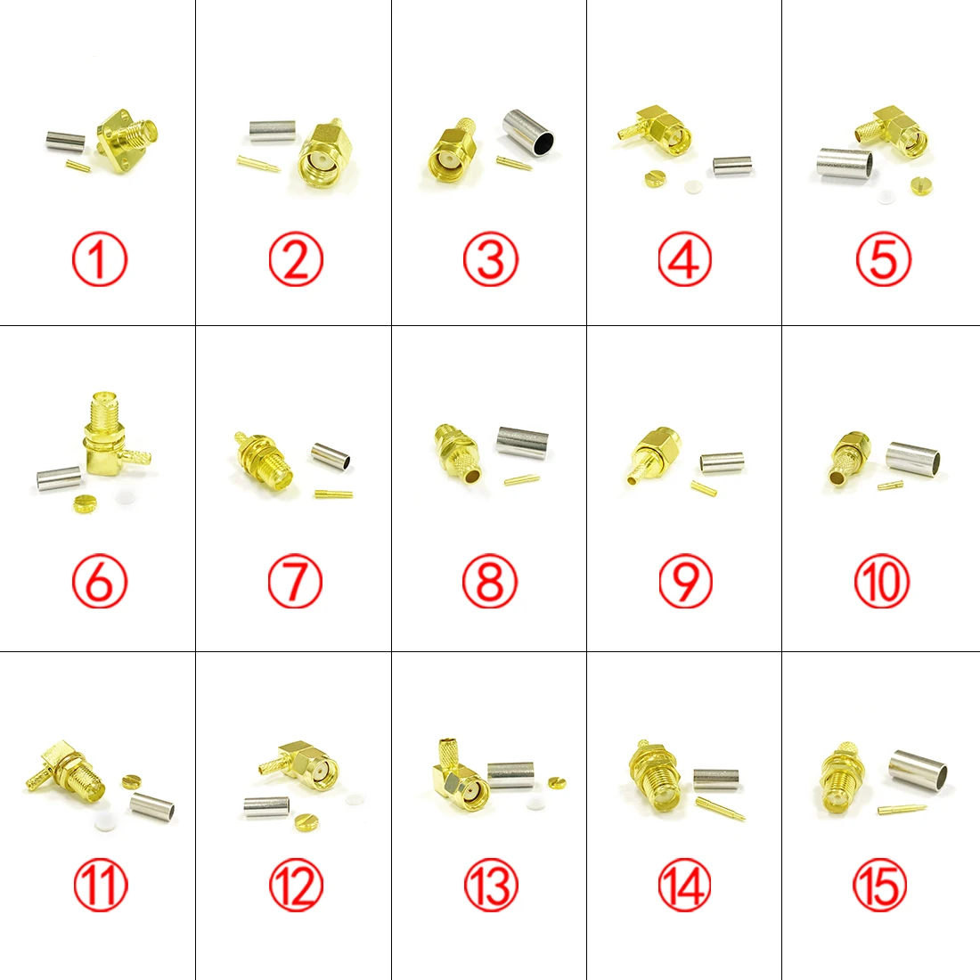 Тип 15: RP обратная SMA гнездовая гайка с штекером RF коаксиальный разъем прямой обжимной для кабеля RG58 RG142