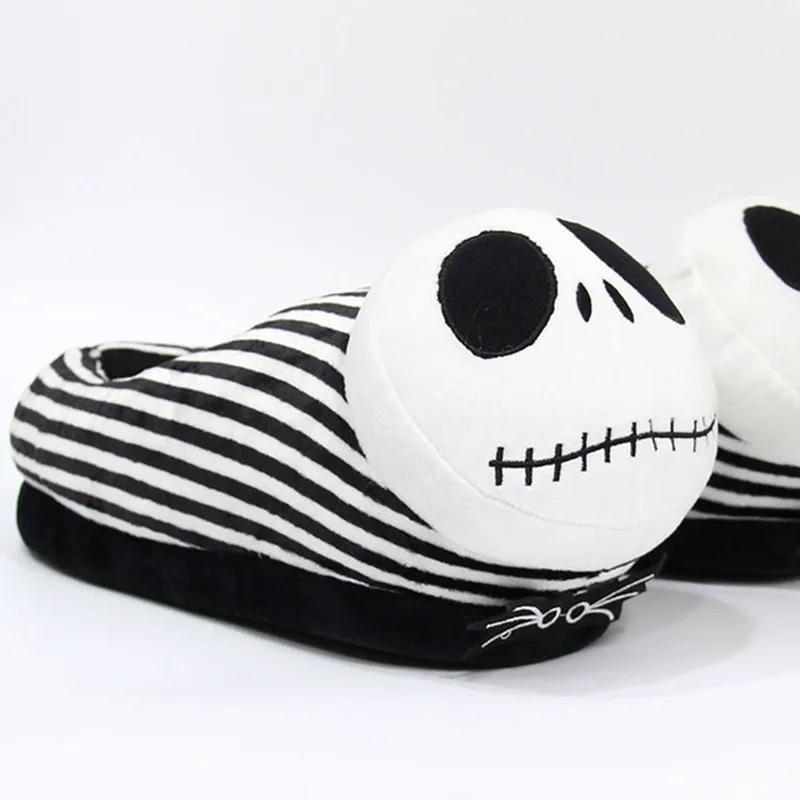 Симпатичные Зимние тапочки с рождественским черепом, забавные креативные тапочки, индивидуальные Мультяшные тапочки, Нескользящие теплые плоские тапочки для спальни