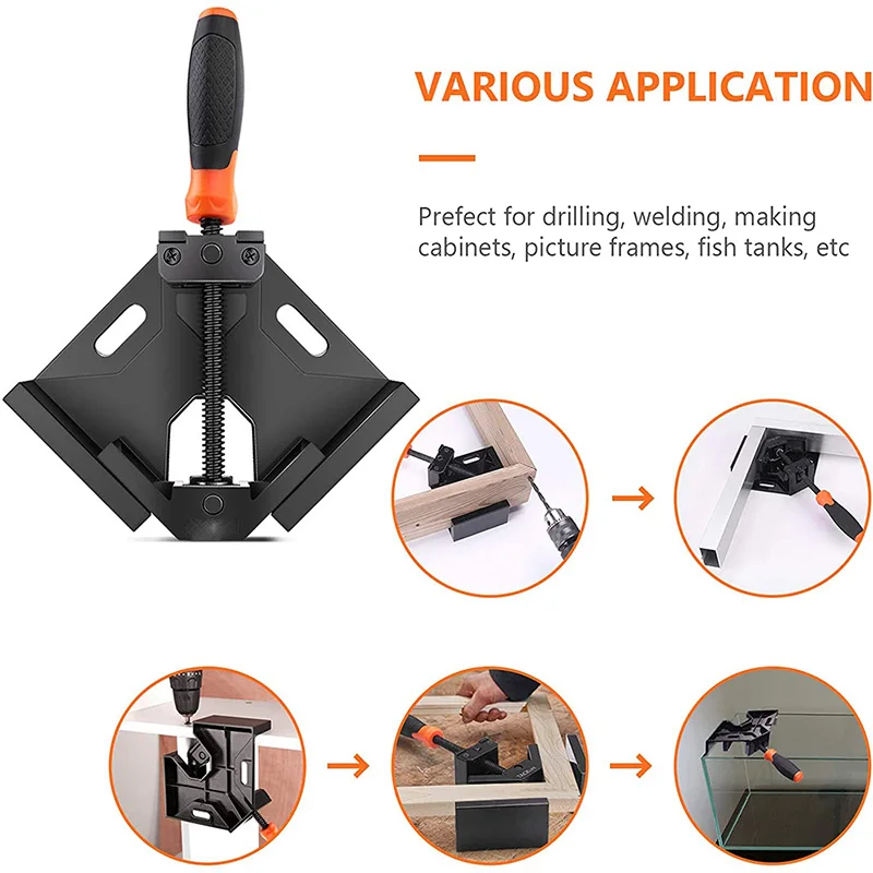 Прямоугольный зажим из алюминиевого сплава-это инструмент для фиксации и подключения проектов, он может сделать изделия ручной работы более точными. Являетесь ли вы работником по дереву DIY или ПРОФЕССИОНАЛЬНЫМ ПЛОТНИКОМ, это простой в использовании и идеальный инструмент для собственного использования. Дерево, сталь и стекло могут быть соединены через него, вы можете использовать свое воображение, чтобы сделать фоторамки, столы, стулья, шкафы и даже аквариумы.