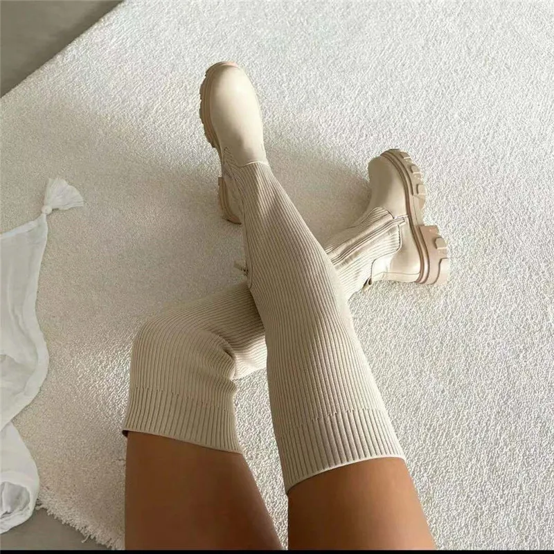 Сапоги-чулки выше колена женские, тянущиеся трикотажные высокие сап...