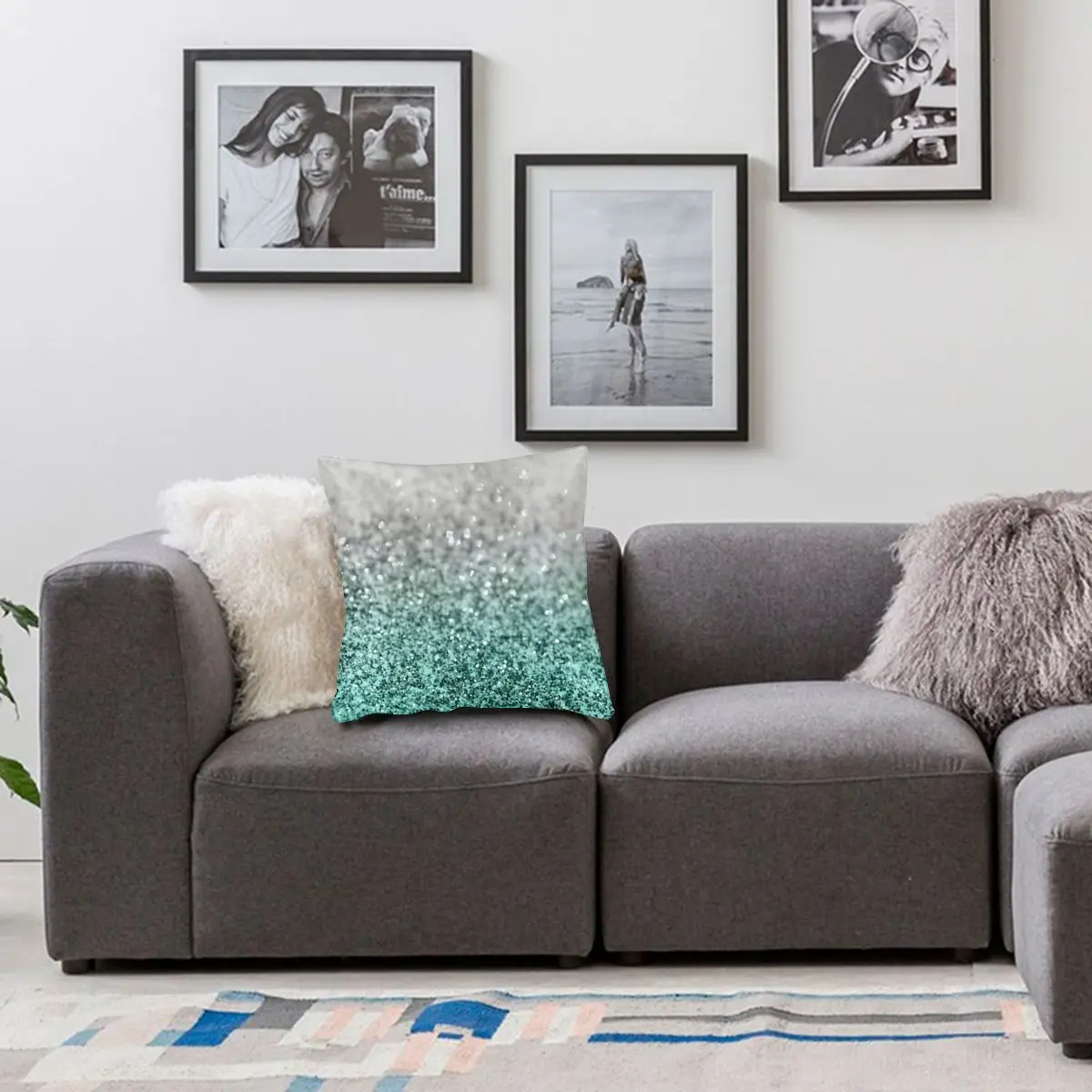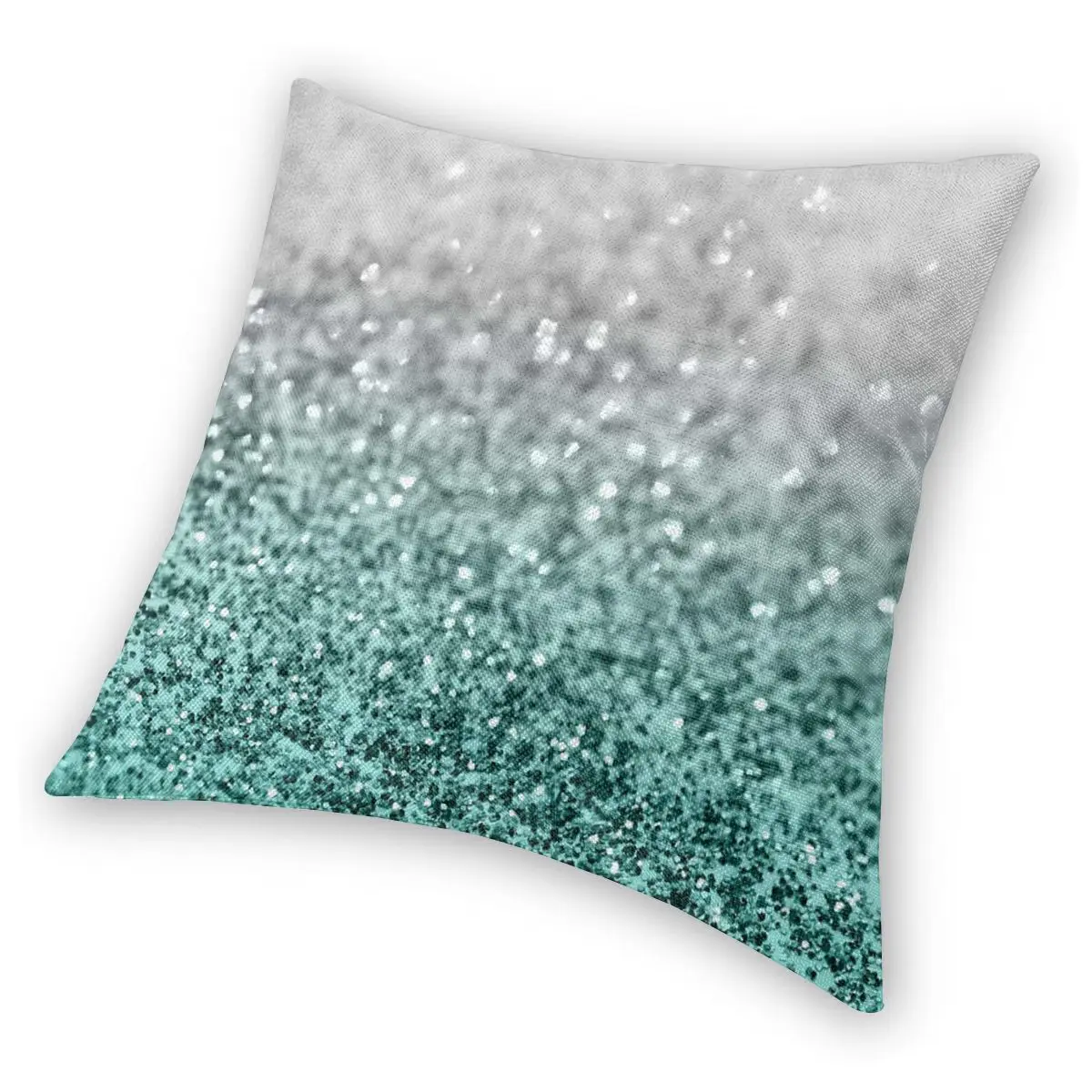 Серебряный чехол с блестками цвета морской волны, блестящий чехол для подушки, шелковая подушка для кровати, чехол для подушки, 50x50
