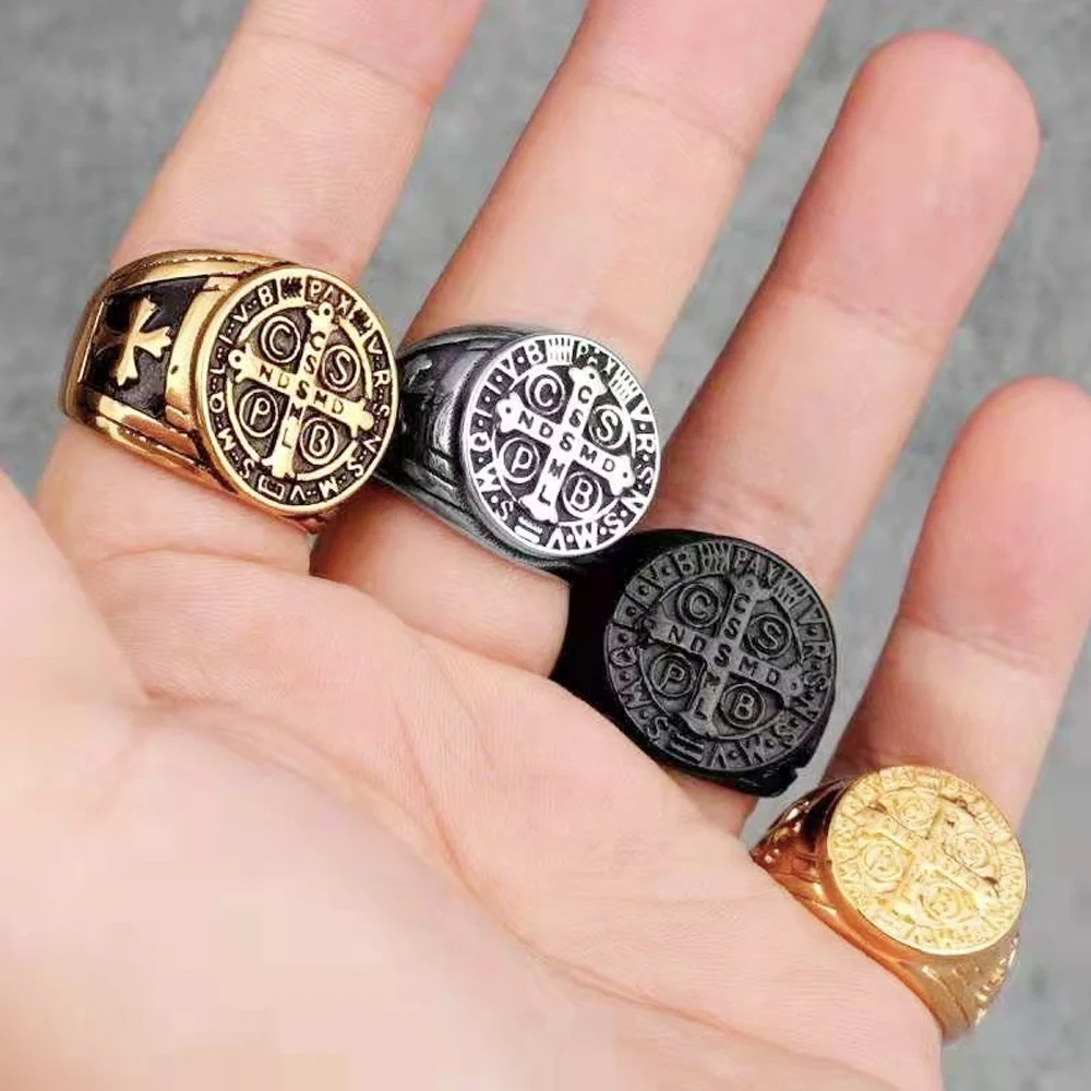Кольцо Иисуса из нержавеющей стали для мужчин, кольцо с христианским черным крестом в стиле Святого Бенедикта CSPB, ювелирное изделие, креативный подарок, оптовая продажа