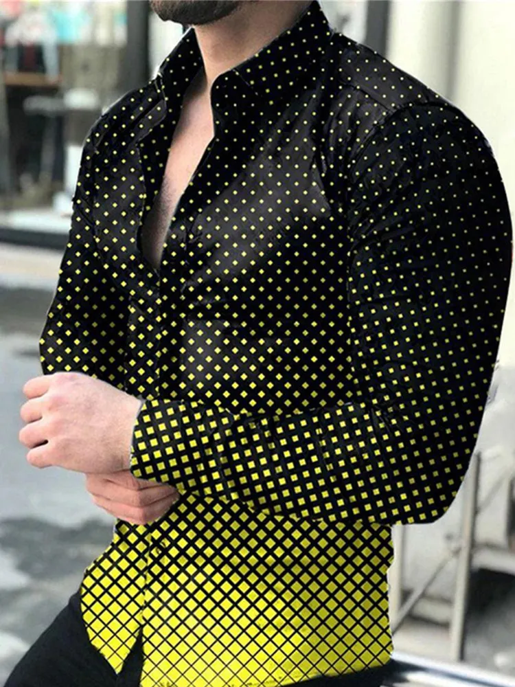Мужская рубашка с длинным рукавом, с градиентным принтом, на пуговицах