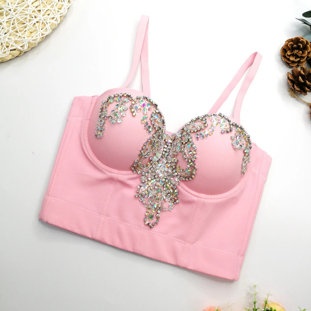 Летний сексуальный женский корсет Стразы для ночного клуба для вечерние короткая женская майка в бюстгальтере укороченный топ с чашкой пуш-ап для груди YH8251