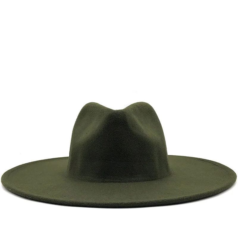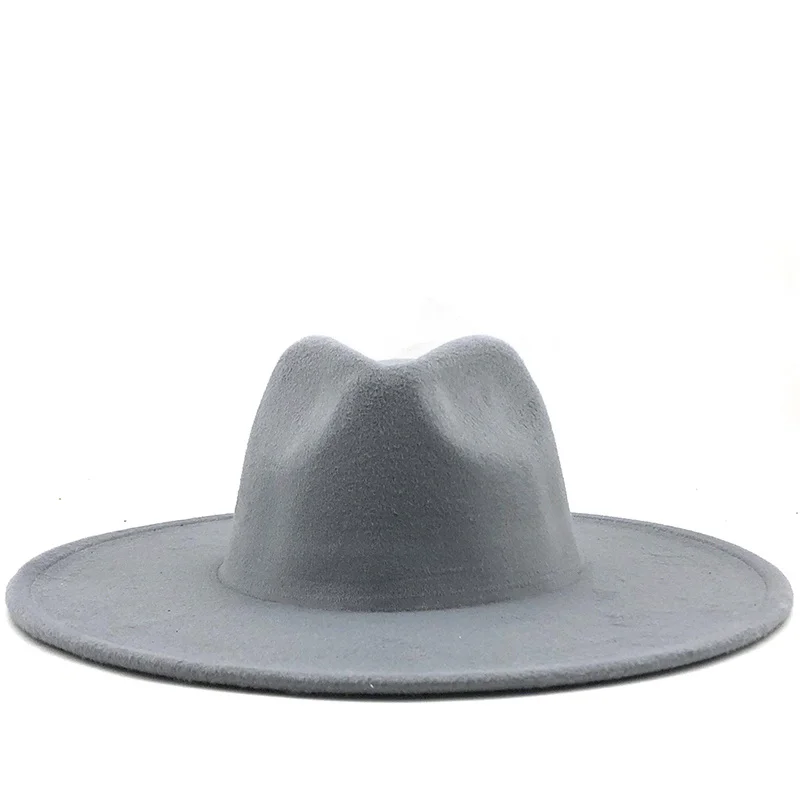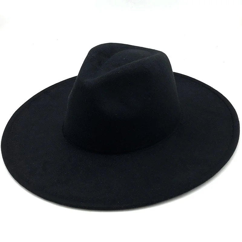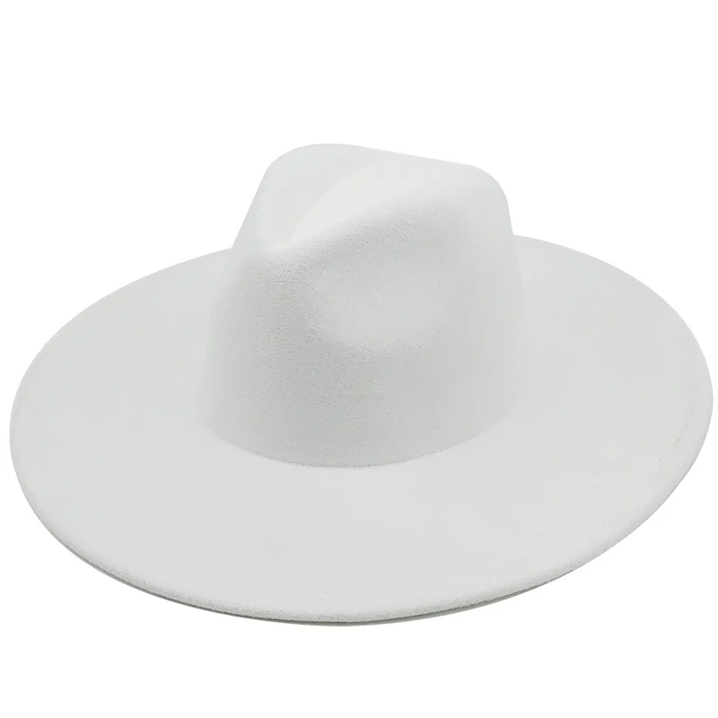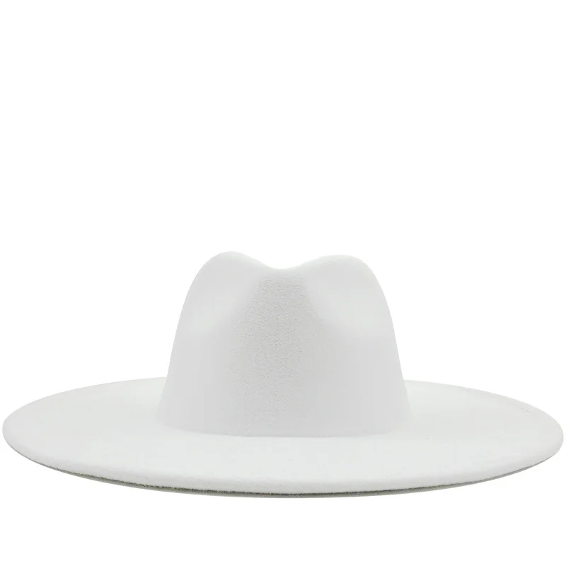 Новая Зимняя шерстяная шляпа в британском стиле, однотонная Классическая Шляпа Fedora, для мужчин и женщин, Панама джазовая, шляпа 9,5 см с широкими полями, большая белая фетровая шляпа