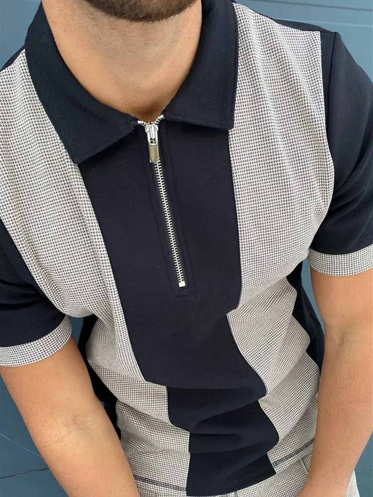 Мужская рубашка-поло в полоску, свободная рубашка-поло с коротким рукавом, на молнии, в стиле оверсайз, одежда для путешествий, лето 2021