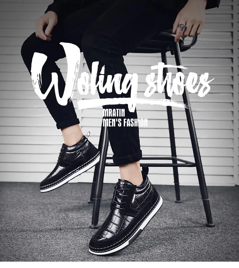 Мужские кожаные повседневные ботинки, зимние хлопковые кроссовки на...