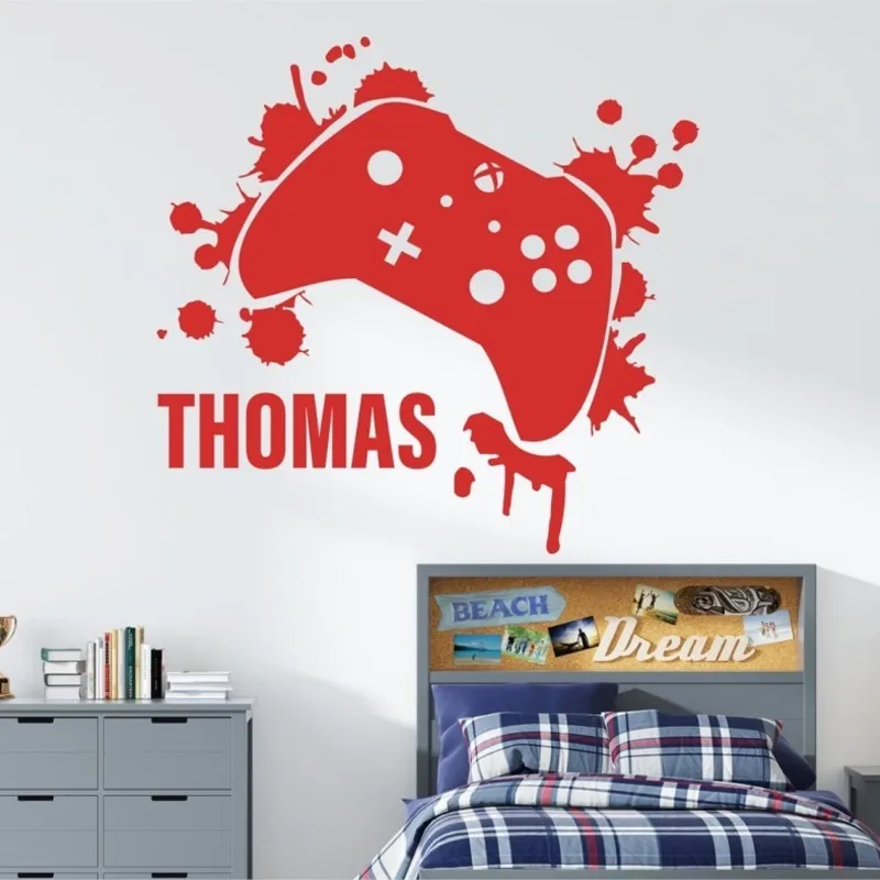 Виниловая настенная наклейка в виде игрока, тематическая наклейка, наклейка с контроллером, настраиваемая наклейка с именем для игры, наклейка на стену для комнаты мальчика yx38