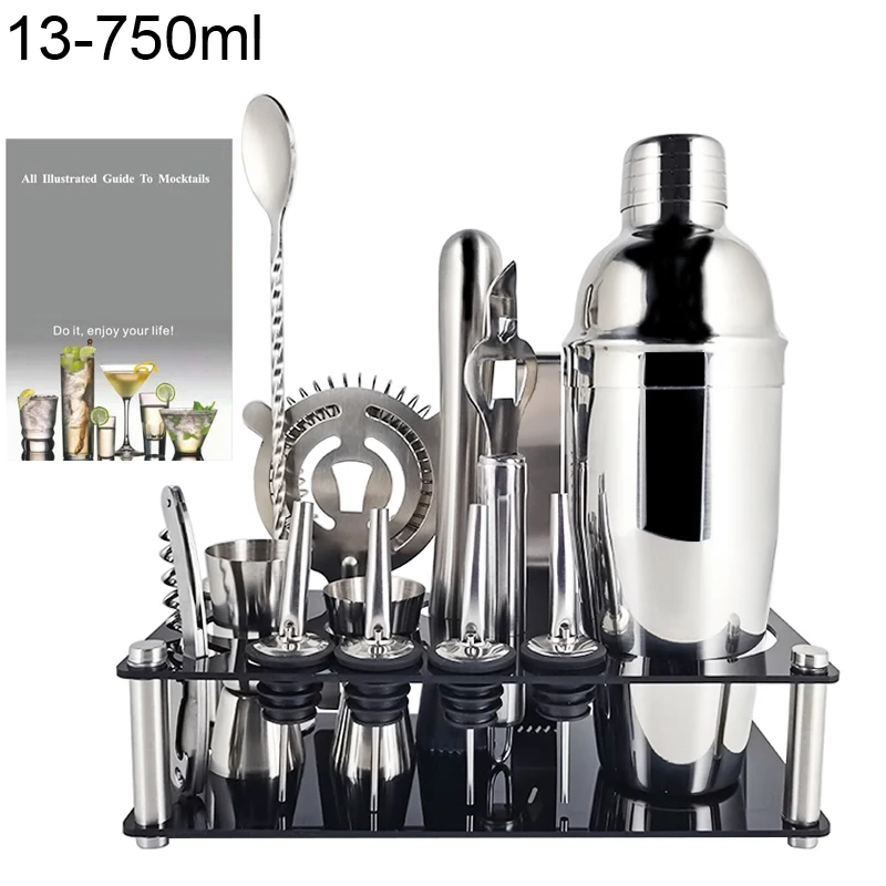 Набор барных инструментов Boston шейкер для коктейлей бармен, 1-14 шт., 600 мл, 750 мл, миксер из нержавеющей стали, шейкеры для напитков, посуда для бара с подставкой