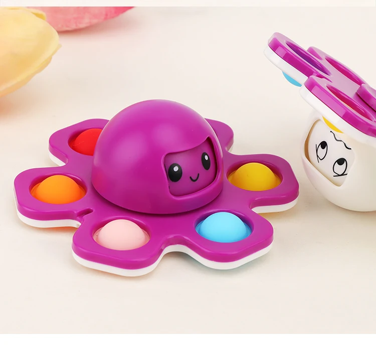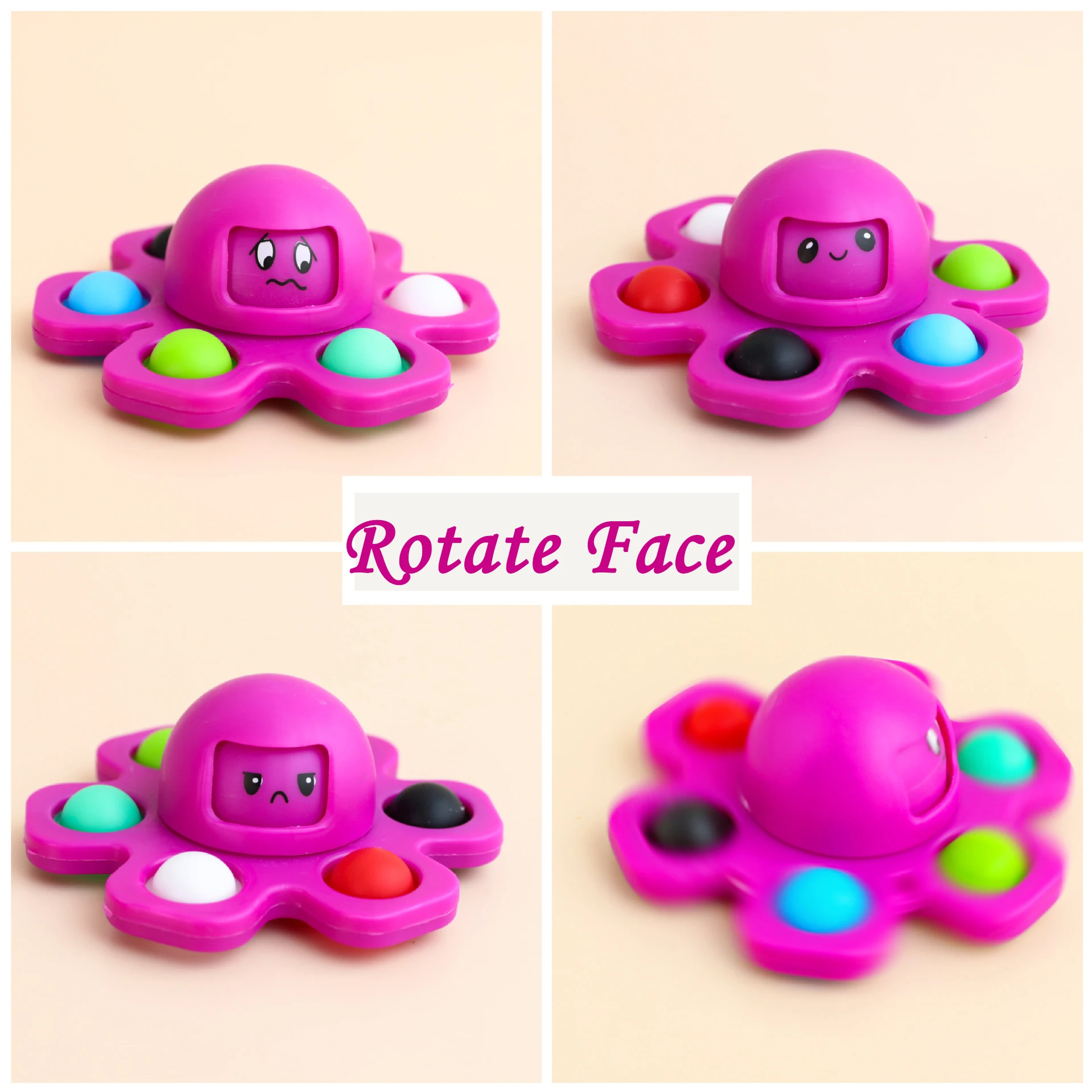 Игрушка-Спиннер Осьминог, сменяющий лицо, брелок, силиконовый, для снятия стресса с аутизмом, интерактивный, с кнопкой, детский пузырь, Подарочная игрушка
