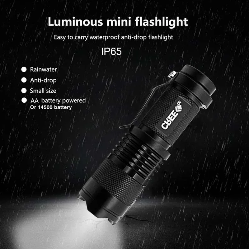 Светодиодный мини-фонарик с регулируемым фокусом, CREE Q5, 2000 люм...