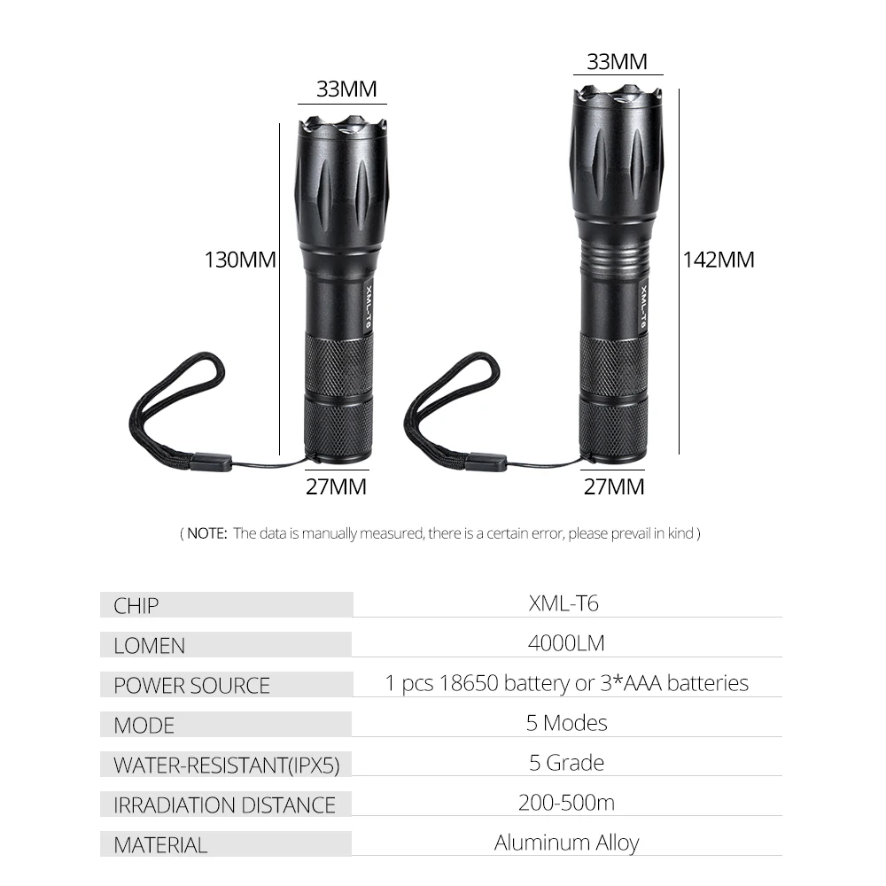 XML T6 светодиодный фонарик 4000 люмен, 5 режимов, масштабируемый п...