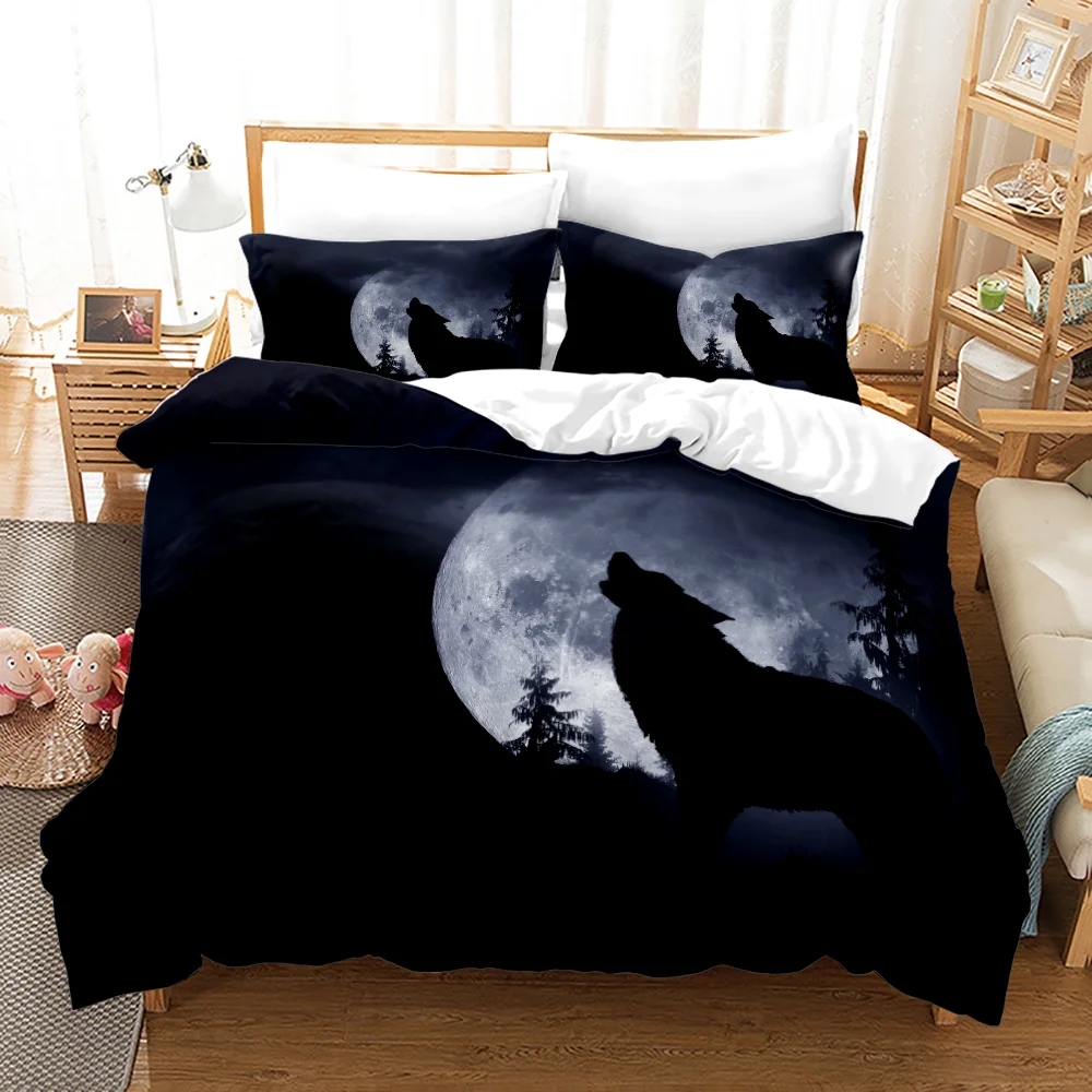 Комплект постельного белья с принтом волк, односпальный Комплект постельного белья, односпальный, односпальный, двуспальный, большого размера, с рисунком животного, для взрослых и детей