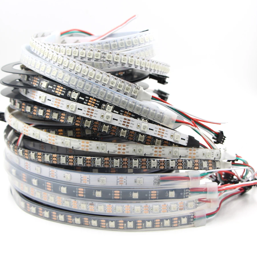 WS2812B умная RGB Светодиодная лента WS2812 индивидуально Адресуемая светильник 3060144 светодиодов чернаябелая печатная плата Водонепроницаемая IP306567 DC 5V