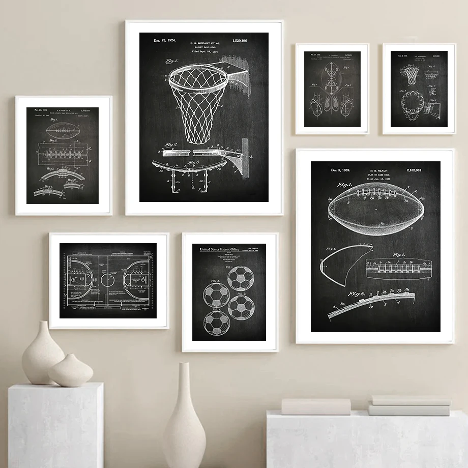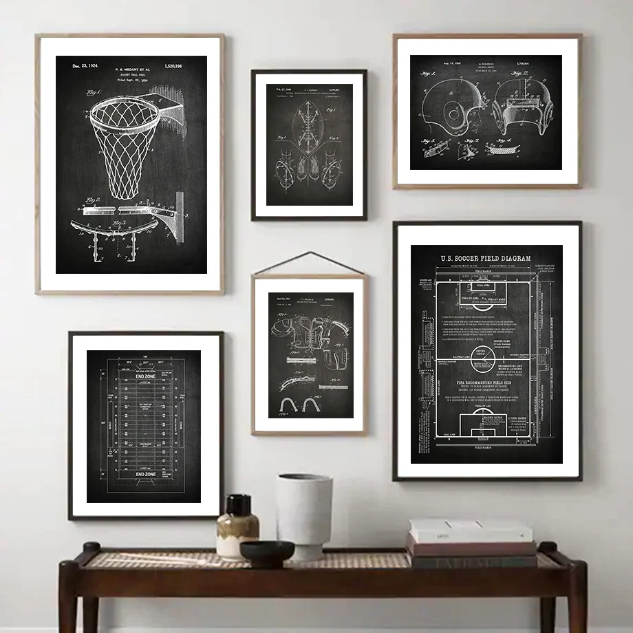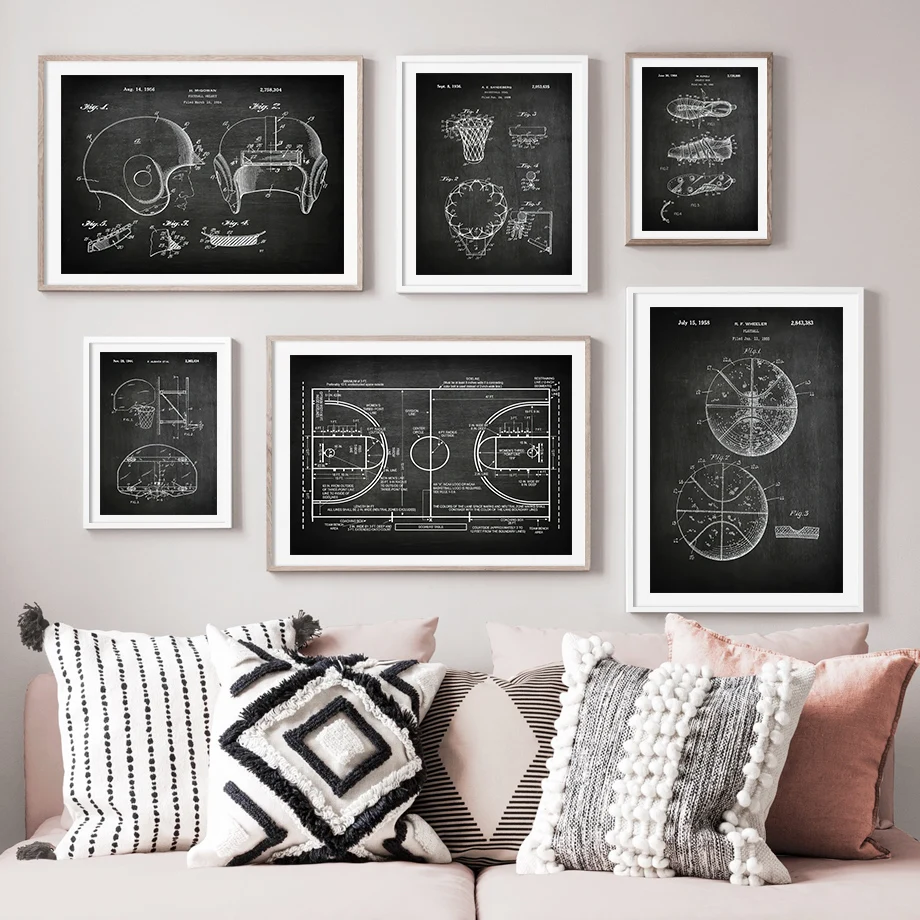 Настенная Картина на холсте с изображением баскетбольной площадки, футбольного поля, скандинавских постеров и принтов для декора гостиной