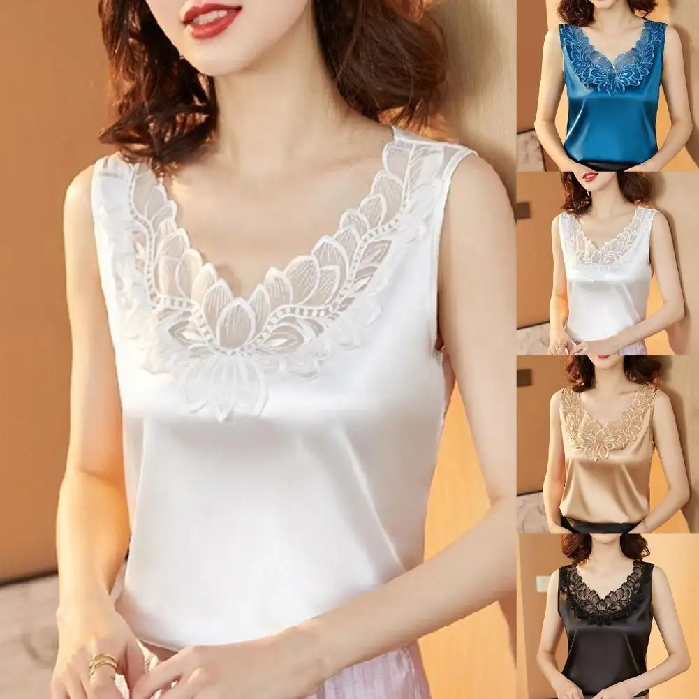Летний женский жилет, однотонная Кружевная блуза без рукавов с v-образным вырезом, топ для офиса