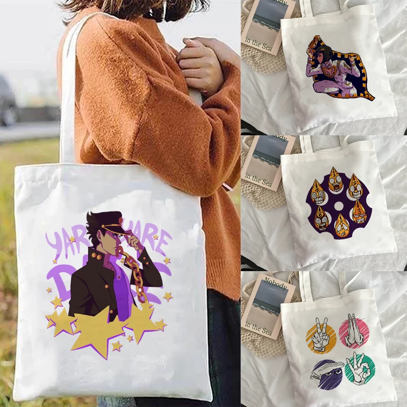 Сумки для покупок Jojo, невероятные приключения, настраиваемый логотип, оптовая продажа, сумка-шоппер 2021, Женская Экологически чистая Складная Сумка-тоут из аниме