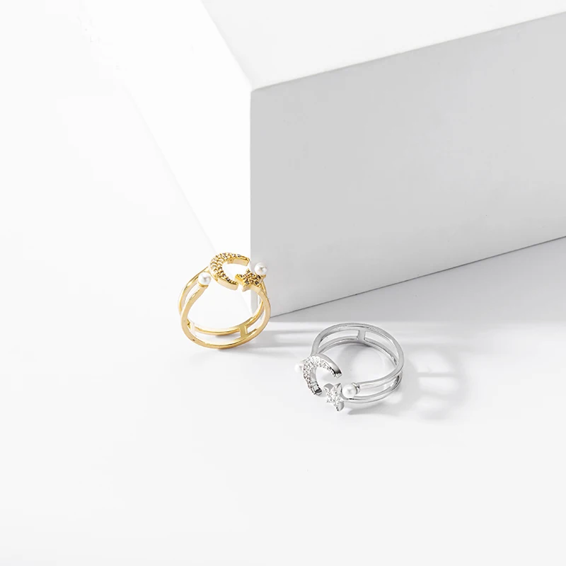 Кольцо женское из серебра 9255 пробы, с подвесками в виде звездного...