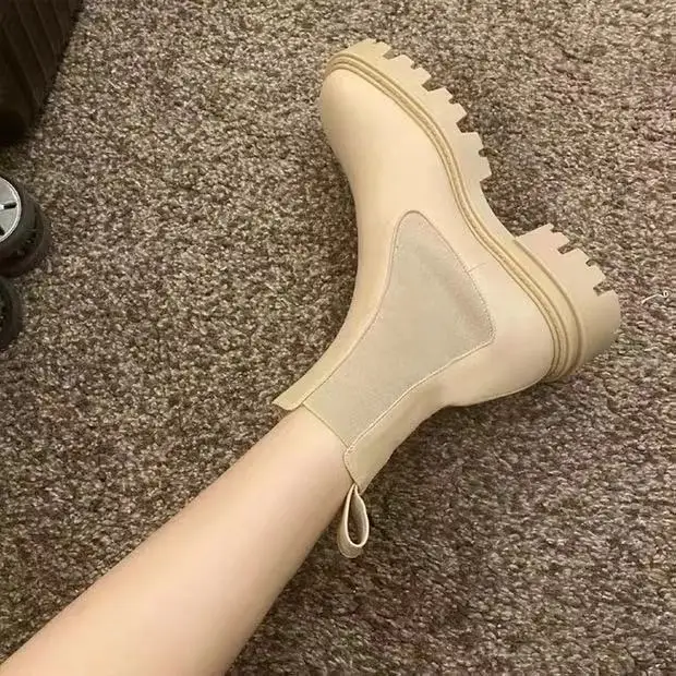 Женские ботинки челси на массивном каблуке ZA, зимние теплые ботильоны на платформе, короткие сапоги, 2021