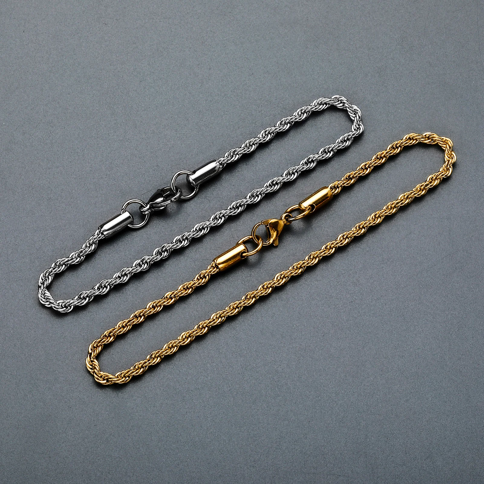 JINAO 2021 Новый 14K позолоченный Высококачественный Браслет 3 мм и 5 мм веревочная цепочка простой браслет для мужчин и женщин ювелирные изделия для подарка