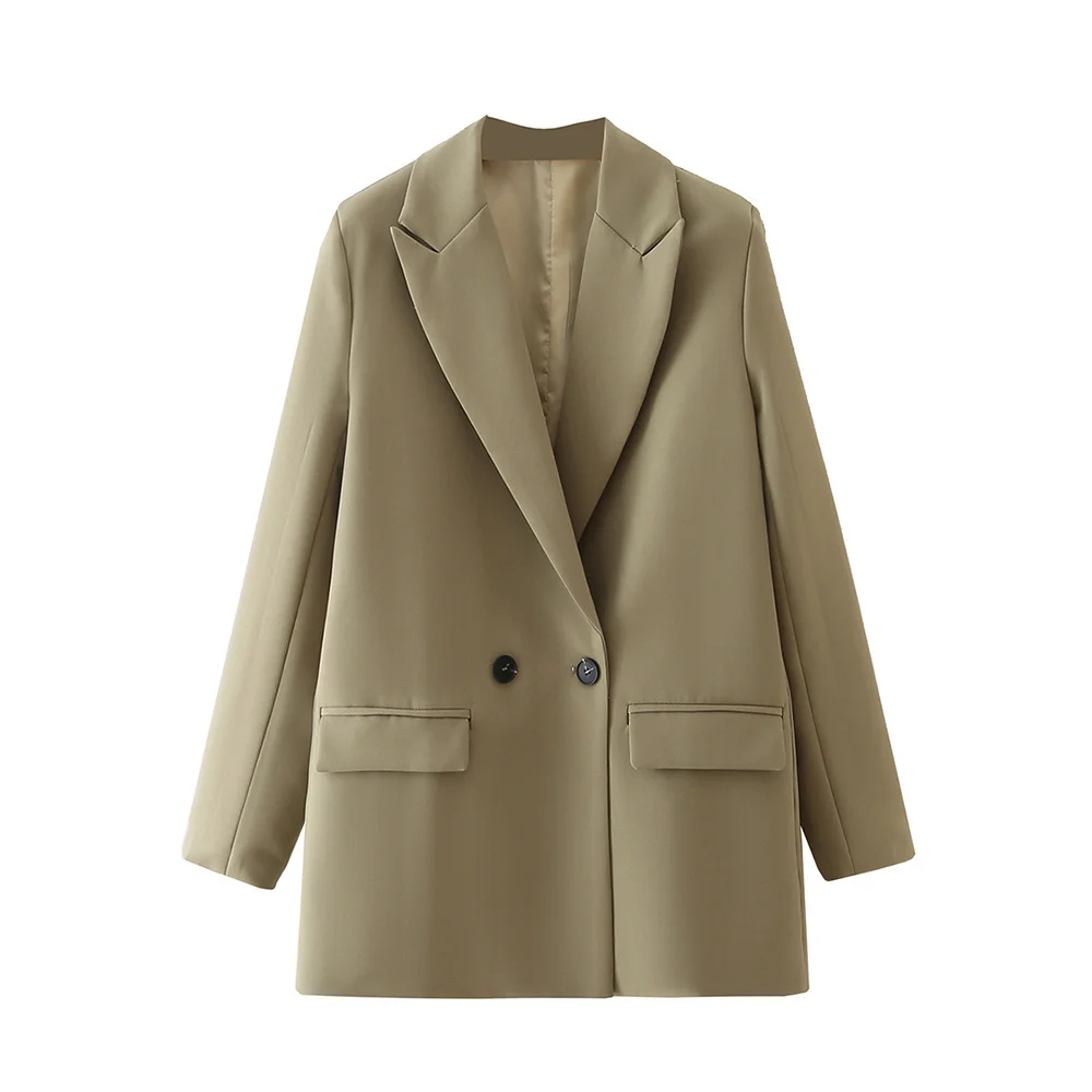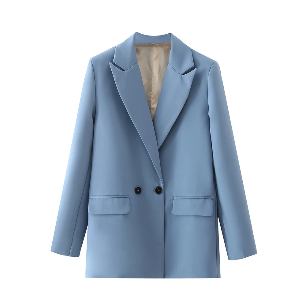 Женский двубортный блейзер с длинным рукавом, свободного покроя