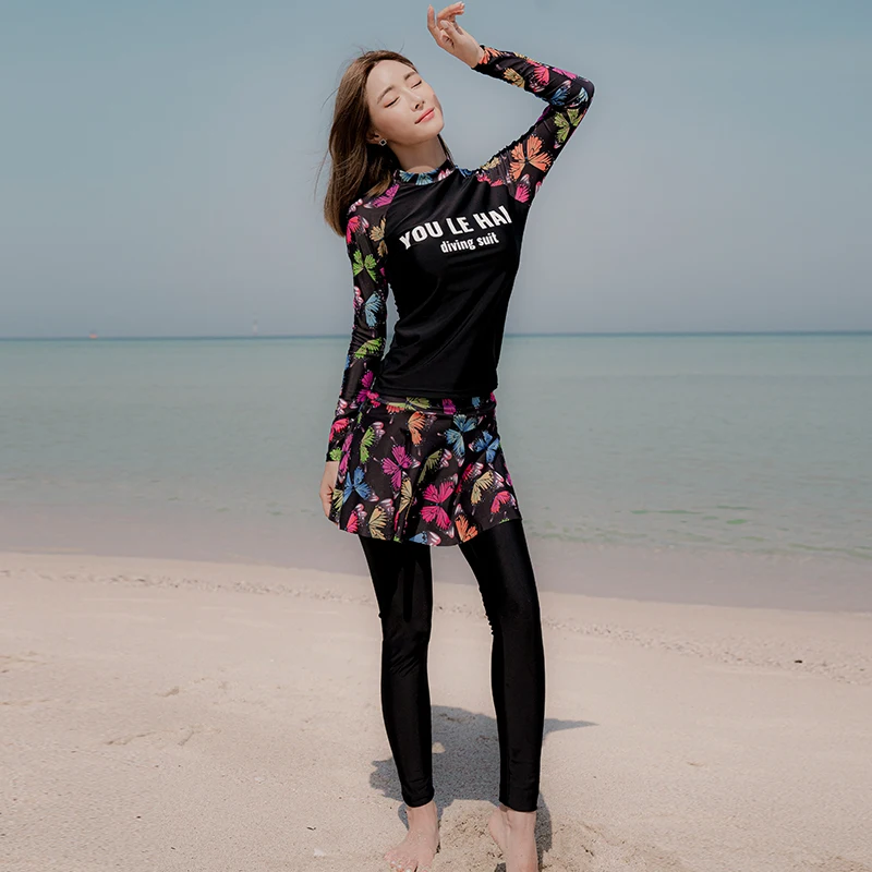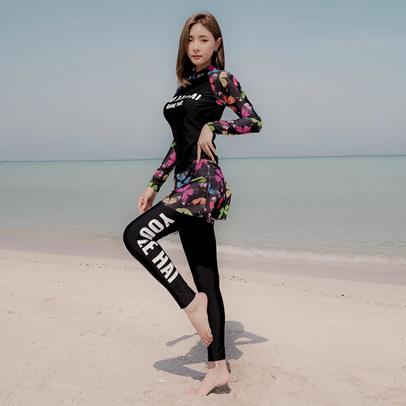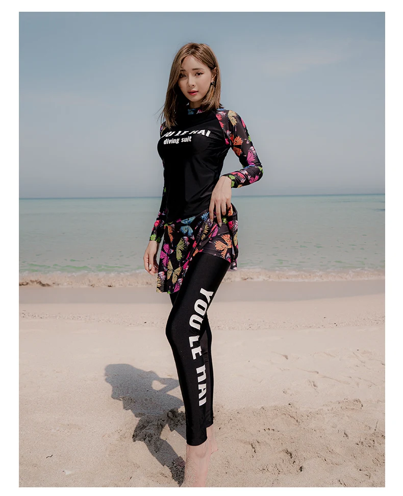 Новинка 2022, женский спортивный купальник с длинными рукавами, длинные брюки, костюм для серфинга, 3 предмета, купальник с подкладкой, пляжная одежда для девочек